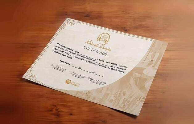 “Esse não exige credencial, logo também não exige carimbos. Pode ser retirado no Ponto de Encontro como os demais. Através de um QR code, o peregrino faz seu cadastro de peregrinação e somente com o CPF cadastrado, já acessamos seu perfil em nosso sistema para emissão do certificado”.