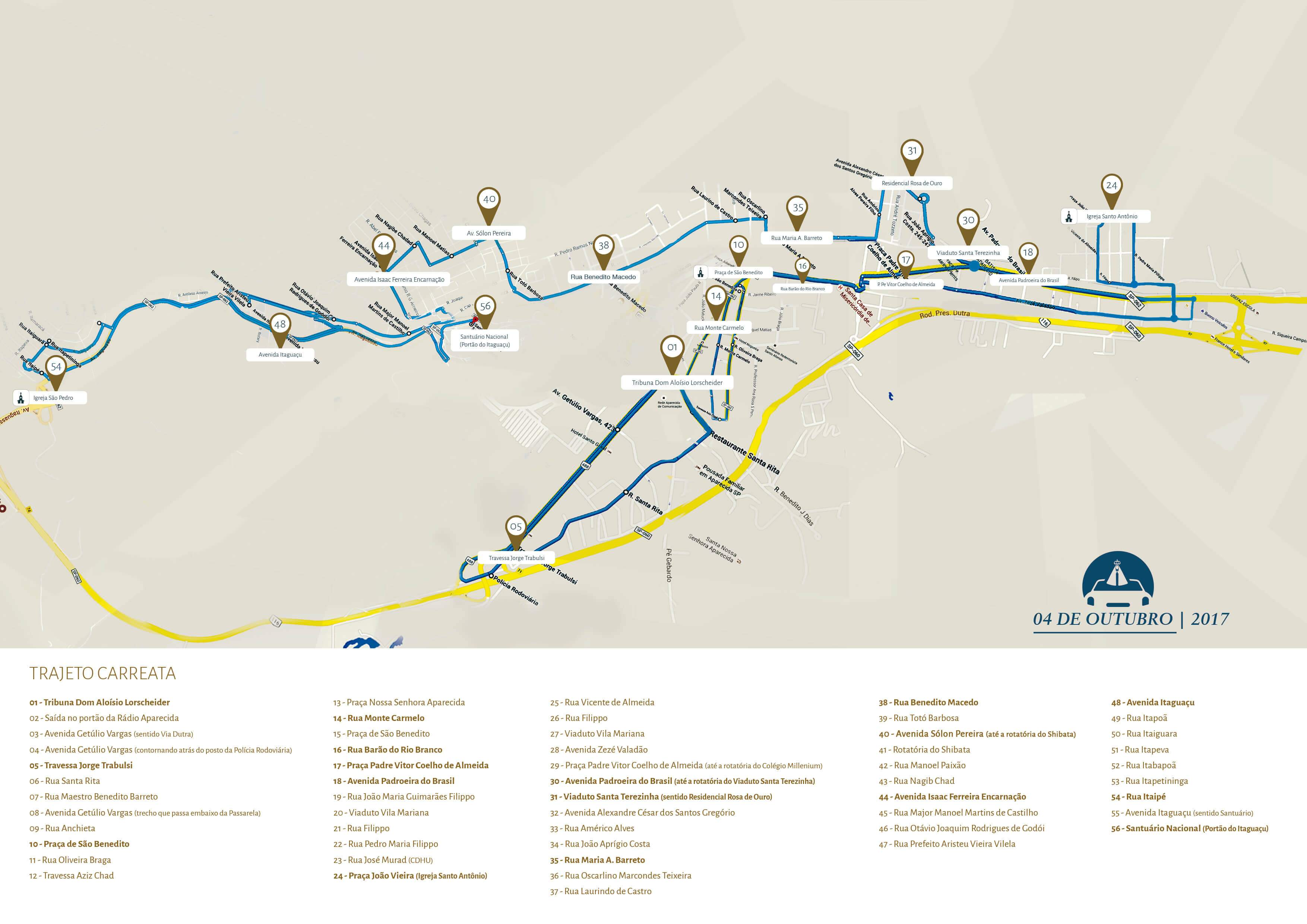 No dia 4 de outubro às 16h30, é a vez dos moradores de Aparecida e os devotos que estiverem em visita à cidade, participarem da Carreta com os carros decorados em homenagem a Nossa Senhora Aparecida. A saída será do Pátio das Palmeiras.