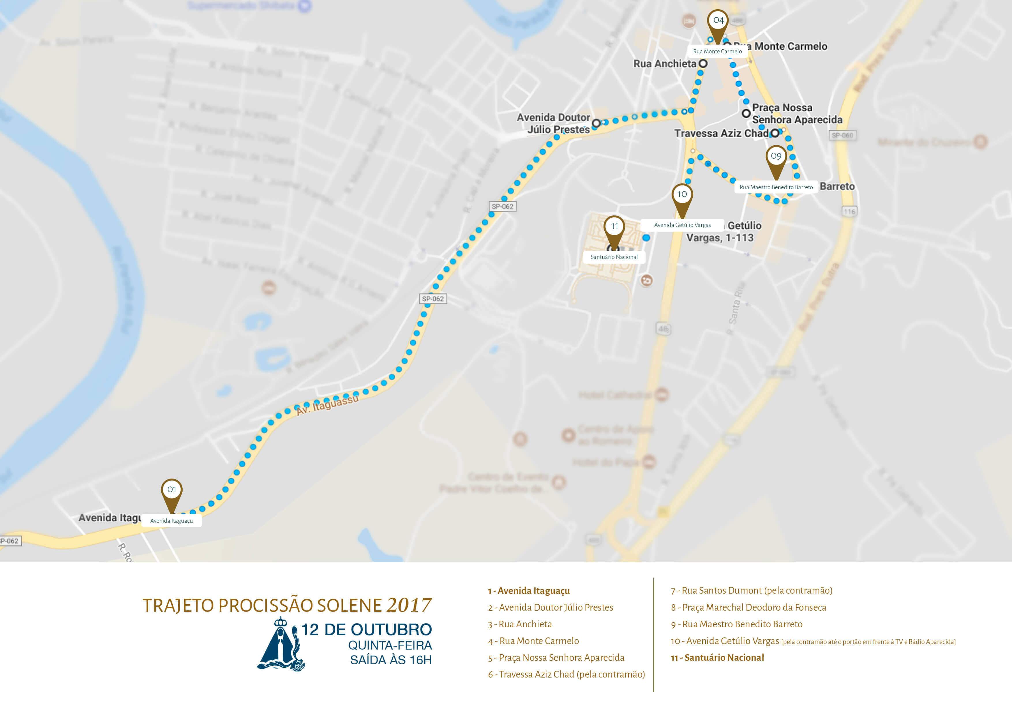 No dia 12, dia da Padroeira do Brasil, a Procissão Solene deste Ano Jubilar saíra do Porto Itaguaçu às 16h30, seguindo até o Santuário de Aparecida para o encerramento do Jubileu com a Santa Missa das 19h.