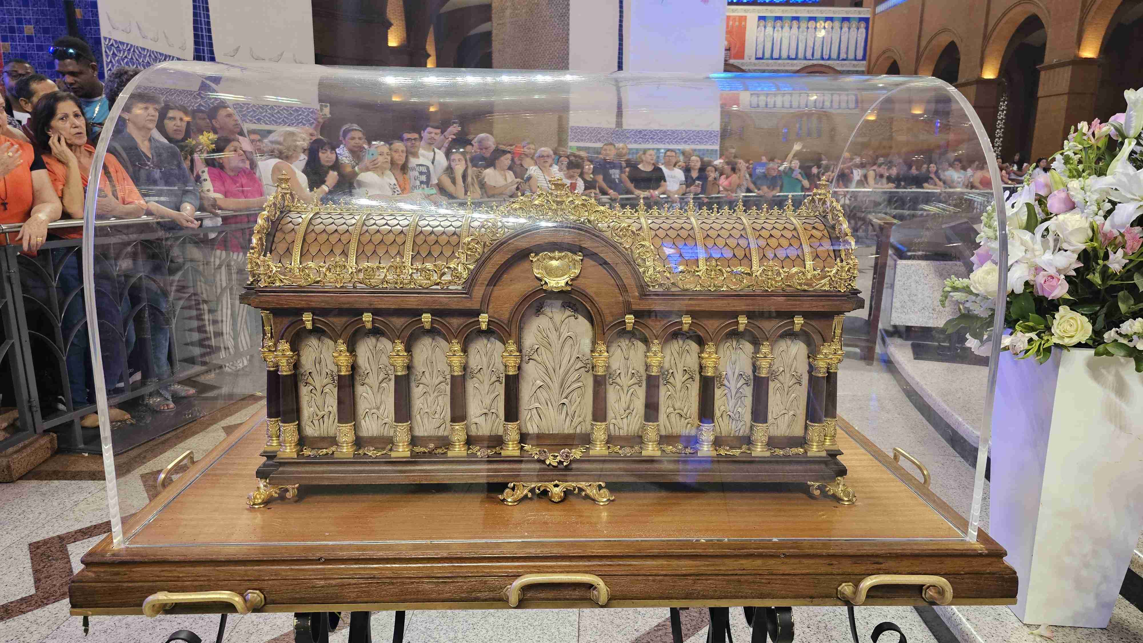As Relíquias permanecerão no Santuário Nacional para momentos de reflexão e oração por todo o dia. Às 10h foi realizada a celebração da Santa Missa presidida pelo Pe. Jadir Teixeira da Silva, C.Ss.R., e, às 12h, a missa será presidida pelo Arcebispo de Aparecida, Dom Orlando Brandes.