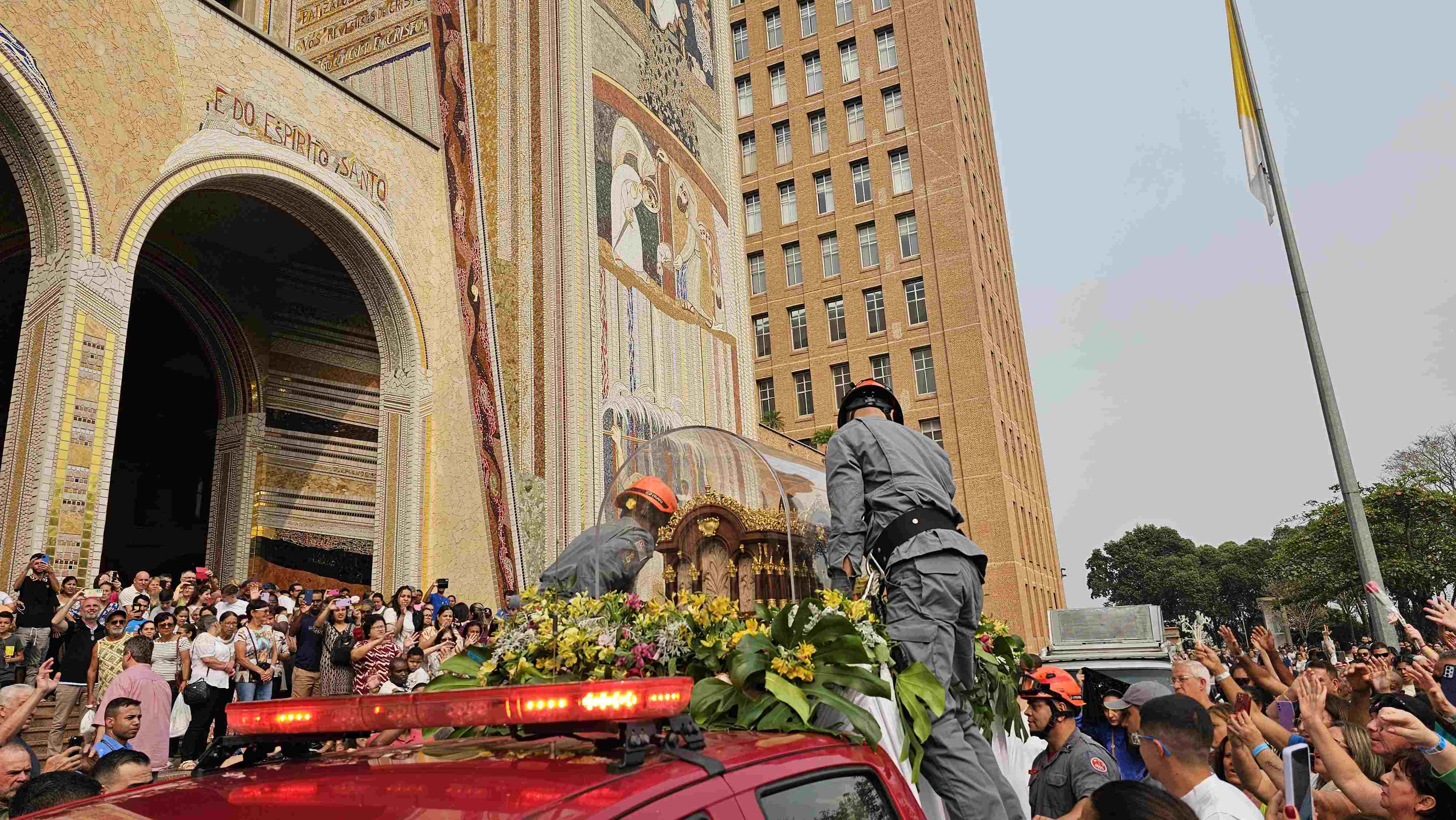 Pe. Ferdinando Mancílio, C.Ss.R., prefeito de Igreja do Santuário Nacional, reforça o papel da vocação inspirada em Santa Teresinha, padroeira das missões, para evidenciar a graça de receber a relíquia da santa na Casa da Mãe. “Receber a relíquia de um santo é relembrar e reavivar essa nossa vocação que nos foi dada por Deus: a santidade”.