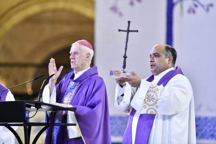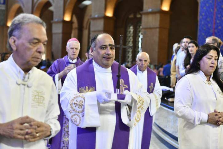 “Saúdo o Padre Omar, que nos traz um grande presente de Páscoa! Vamos pedir a graça para que o Brasil seja mais eucarístico, porque a Cruz foi usada na primeira missa em nosso país. E que possamos ser Cirineus, ajudar a carregar a Cruz de nossos irmãos”, disse Dom Orlando logo no início da Missa.