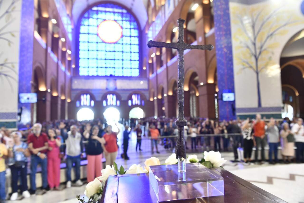 Em território brasileiro desde a terça-feira (15), a Cruz da primeira missa celebrada no Brasil chegou ao Santuário Nacional de Aparecida na manhã desta quarta-feira (16) e esteve no Altar Central durante a celebração das 9h, presidida pelo Arcebispo Dom Orlando Brandes e concelebrada pelo Padre Omar Raposo, reitor do Santuário Arquidiocesano do Cristo Redentor, no Rio de Janeiro (RJ), responsável pela iniciativa em trazer a relíquia ao solo nacional.