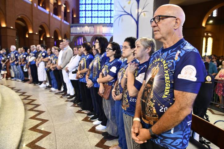No início da celebração, os fiéis presentes acolheram a imagem peregrina de Nossa Senhora, Ela que ilumina e guarda a vida e o caminho de todos os romeiros que peregrinam seu santuário.