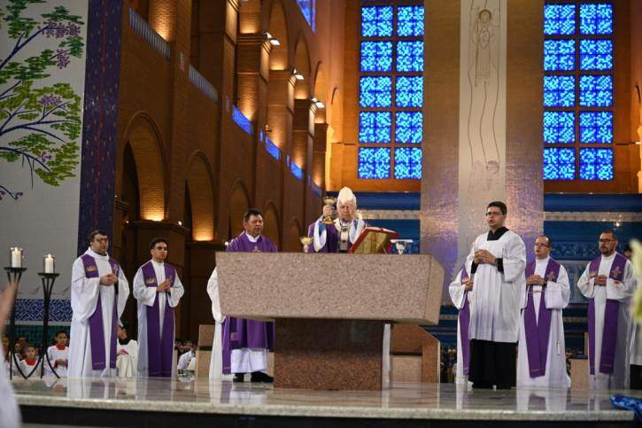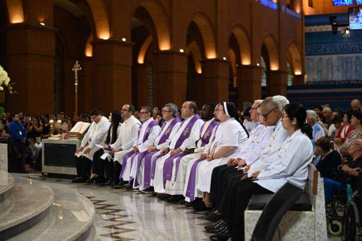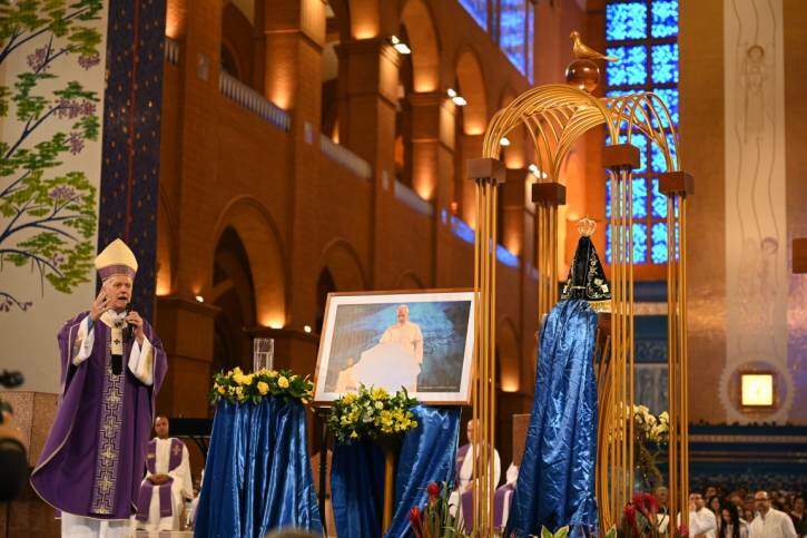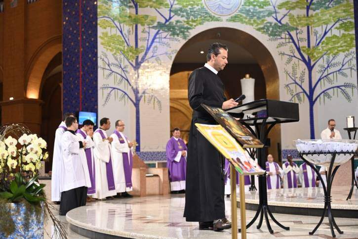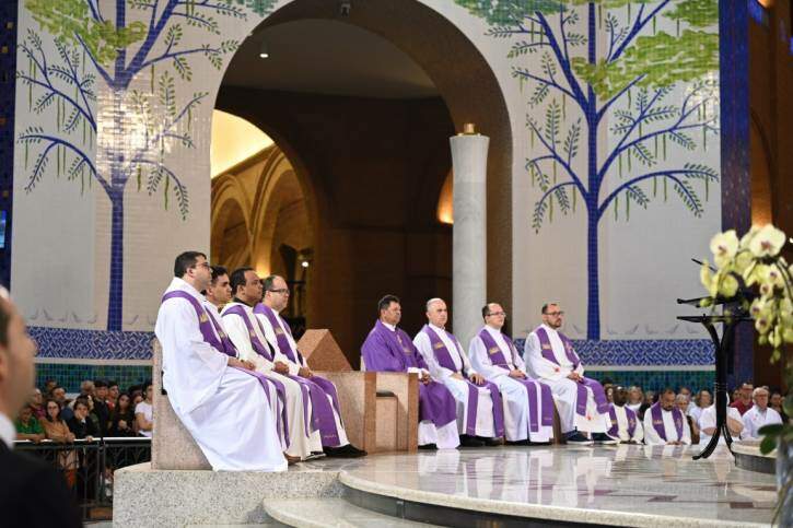 A celebração eucarística foi presidida por Dom Orlando Brandes, arcebispo de Aparecida, e animada pelo Missionário Redentorista, Ir. Alan Patrick Zuccherato, C.Ss.R., diretor de Arte e Pastoral da TV Aparecida.