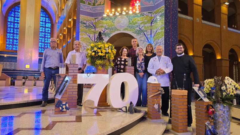 O Santuário Nacional celebrou, nesta terça-feira (11), os 70 anos do início da grande obra de construção da Basílica de Aparecida, o maior santuário mariano do mundo.