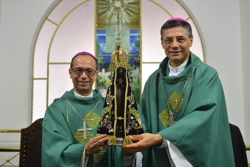 A celebração das 9h desta sexta-feira (7) no Santuário de Aparecida acolheu Dom José Mário, bispo auxiliar da Arquidiocese de Curitiba (PR) e dom José Luiz Gomes de Vasconcelos, bispo da Diocese de Sobral (CE) para receberam a imagem peregrina de Nossa Senhora. A santa missa tambem contou com a presença dos missionários redentoristas do Brasil, participantes de um encontro nacional que acontece no Seminário Santo Afonso em Aparecida, desde a última terça-feira (4).