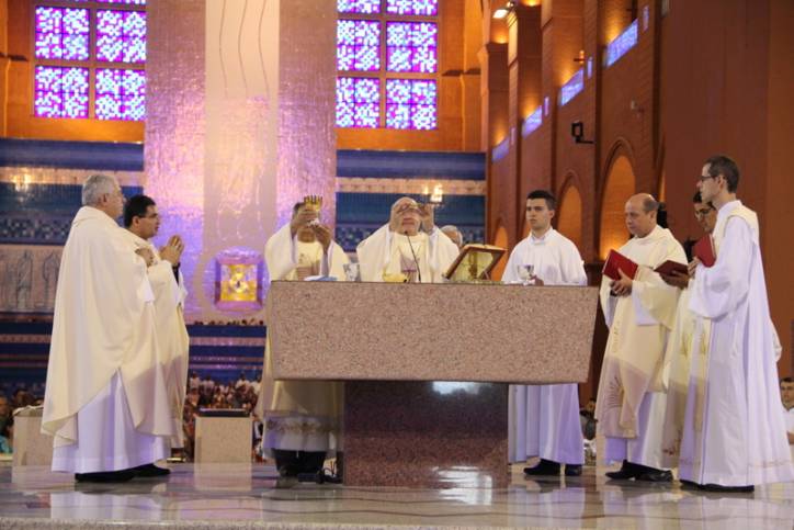 Logo após a missa, os participantes se reuniram no Centro de Eventos Padre Vitor Coelho de Almeida, onde deram continuidade aos trabalhos do Seminário Nacional, promovido pela CNBB (Conferência Nacional dos Bispos do Brasil).