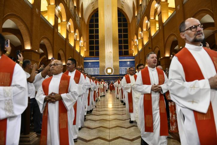 A noite desta sexta-feira (6) marcou o início da 18ª Romaria Nacional do Terço dos Homens no Santuário Nacional de Aparecida. Milhares de devotos vindos de vários estados do país lotaram o Altar Central para a Missa de Abertura, reafirmando o compromisso de fé sob o tema: “Com a fé de Maria, rezamos pela família”.