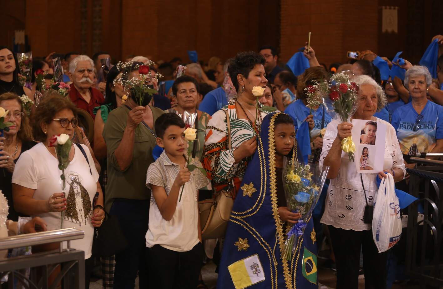 Nas mãos de cada devoto, as flores são como oração, elas representam a fé que cada um traz em seu coração, a confiança de que a Mãe do Céu cuida e o agradecimento por tantas bênçãos e proteção.