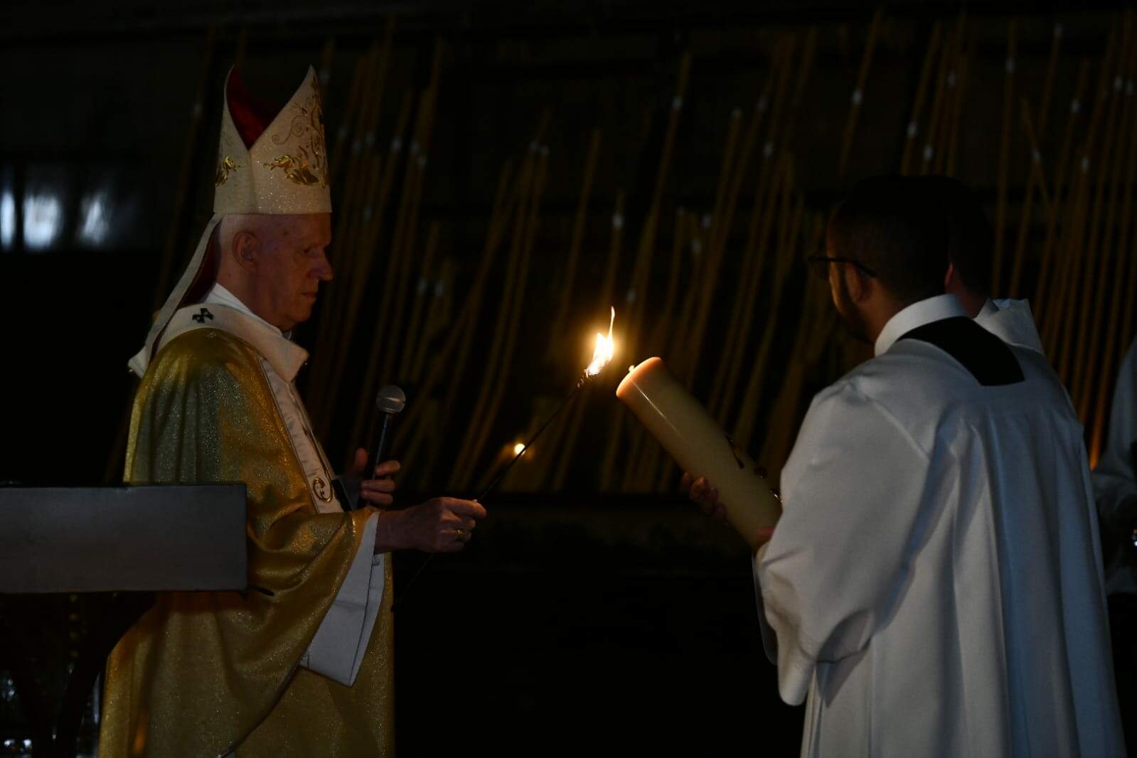 Dom Orlando iniciou a homilia da celebração com uma saudação aos presentes e parabenizou aqueles que escolheram o Santuário Nacional para participar da Vigília Pascal.