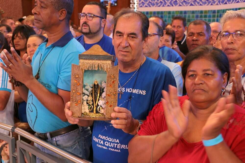 Ele também deu testemunho de um fato que lhe marcou nesta 12ª Romaria Nacional do Terço dos Homens, que foi o olhar de Maria para com seus filhos: “A Mãe nunca tira o olhar de seus filhos, mesmo quando está longe. Ela nunca tirou os olhos de Jesus e ela nunca tira os olhos de nós, que somos discípulos de Jesus. O olhar de Maria nos aponta o caminho certo”, disse o bispo.