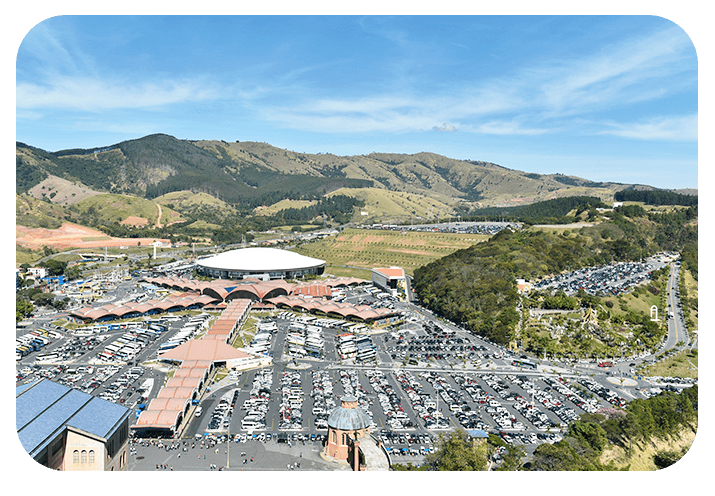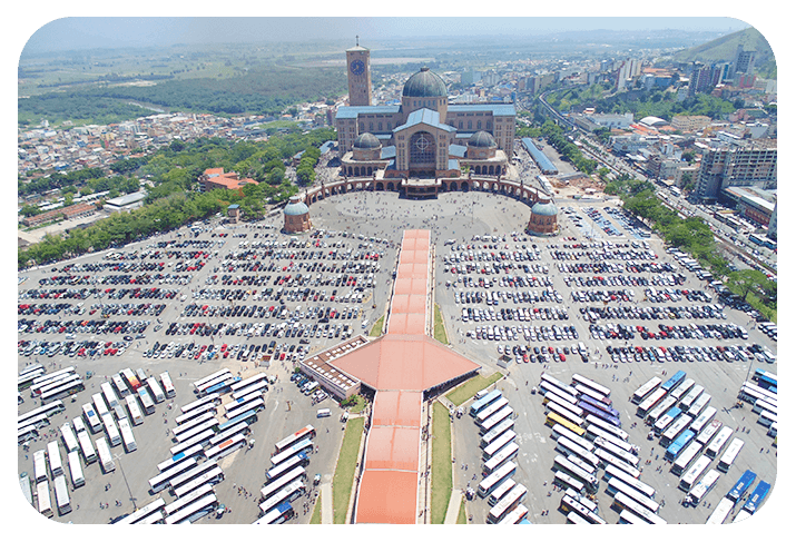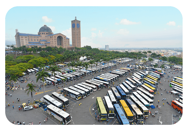 O estacionamento do Santuário Nacional de Aparecida oferece 2 mil vagas para ônibus e 3 mil vagas para carros de passeio, além de seguro contra roubo ou furto de veículos.