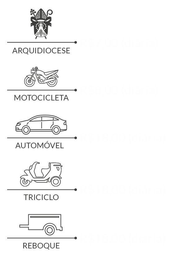 Carro com placa das cidades que compõem a Arquidiocese de Aparecida: Valor de R$ 18,00 aos sábados, domingos e feriados.