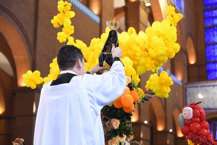 Iniciando o Dia da Padroeira do Brasil, 12 de outubro, o Santuário Nacional celebrou neste sábado (12), às 7h, a Missa das Crianças. A entrada de Nossa Senhora contou com a presença dos pequenos no carro-andor ao lado da imagem e trouxe balões que representaram a fauna e flora amazônica.