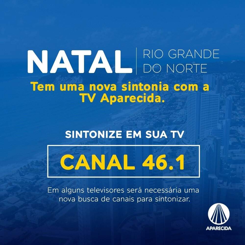 A partir desta terça-feira (16), o canal da TV Aparecida, em Natal (RN), deixará de ser sintonizado pelo 47.1 e passará para o 46.1. E em alguns televisores será necessária uma nova busca na frequência dos canais para sintonizar a TV Aparecida.