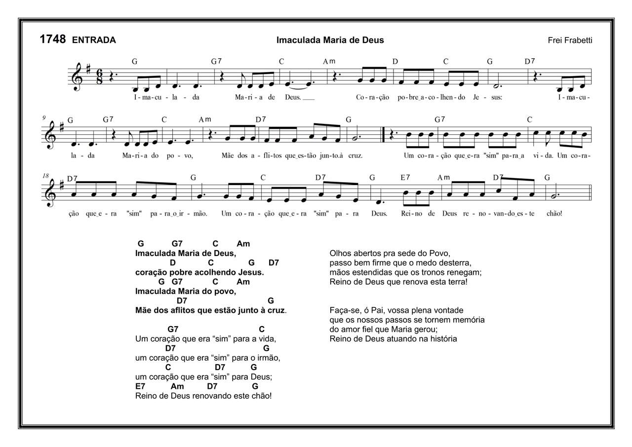E Juliana Gianetti, cantora e organista do Santuário Nacional, entoará os cantos, juntamente com a Irmã Custódia. São eles: “Imaculada, Maria de Deus” – J. Tomaz Filho | F. Fabreti, “Dentro de Mim” – Pe. Zezinho e “Na Casa de Nazaré” – Frei Fabreti, OFM | J. Tomaz Filho. Veja as partituras: