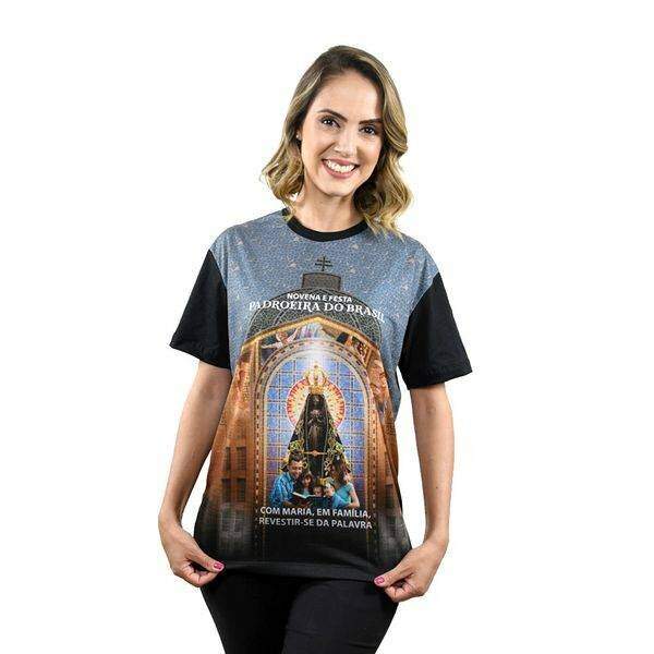 Para a experiência e vivência ser mais especial, você pode adquirir na Loja Oficial a linda Camiseta temática da Novena e Festa de 2020 “Com Maria, em família, revestir-se da Palavra”. O modelo exclusivo é ideal para homens e mulheres. A peça foi pensada com carinho, para ser uma recordação da Novena e Festa de 2020. A camiseta também é uma ótima opção para presentear amigos e familiares, como um convite para que todos se preparem para celebrar Nossa Senhora Aparecida no mês de outubro.