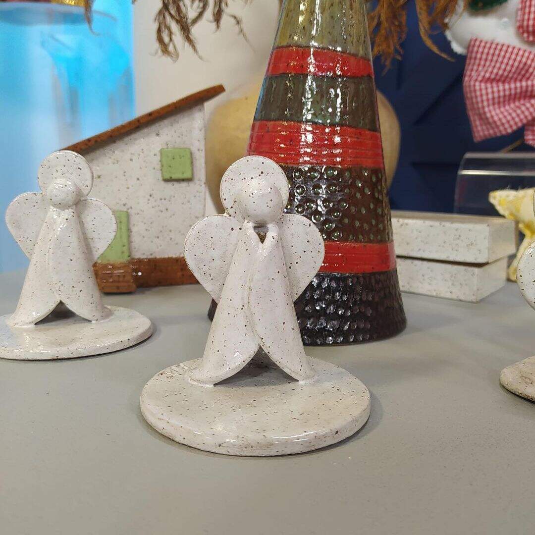 11) Molde uma bolinha de aproximadamente 2,0 cm de diâmetro e fixe na parte de cima, formando a cabeça do anjo natalino.