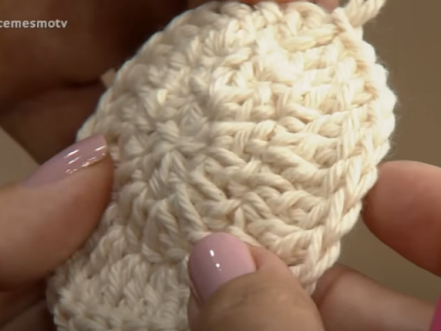 3. Segunda carreira: faça 3 correntinhas, e faça pontos baixos cobrindo os pontos até o meio, faça 2 correntinhas e continue fazendo pontos baixos até chegar no começo, faça 3 correntinhas e feche com 1 ponto baixíssimo. Corte o fio.