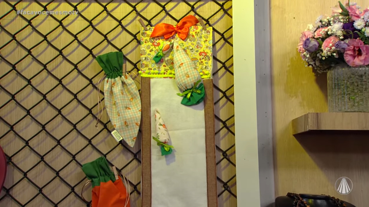 2 - Coloque nas pontas o tecido de motivo de páscoa;