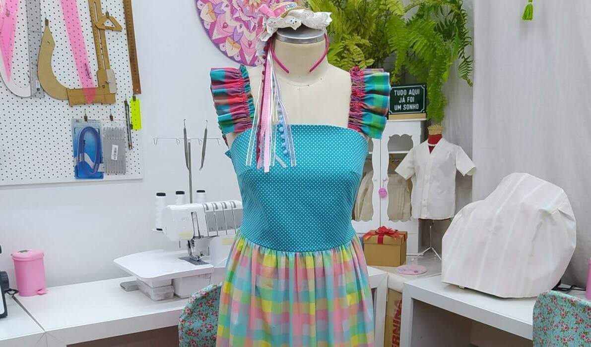 Passe o elástico por dentro das alças e prenda nas extremidades, formando um babado.