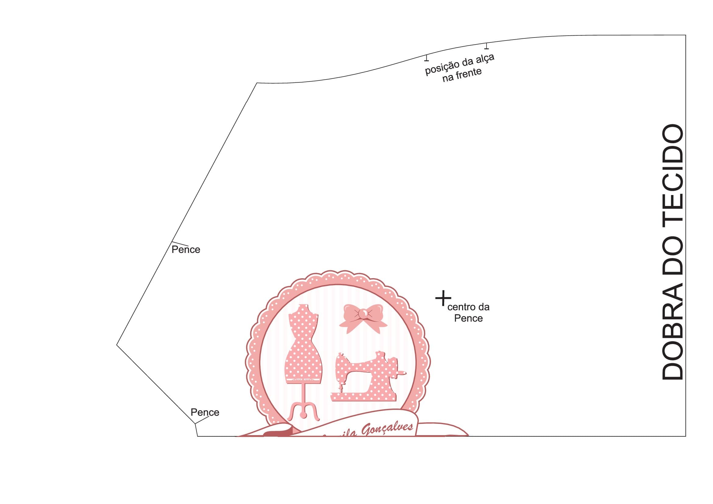 Com ajuda do molde, marque as pences no corte de tecido referente ao busto.