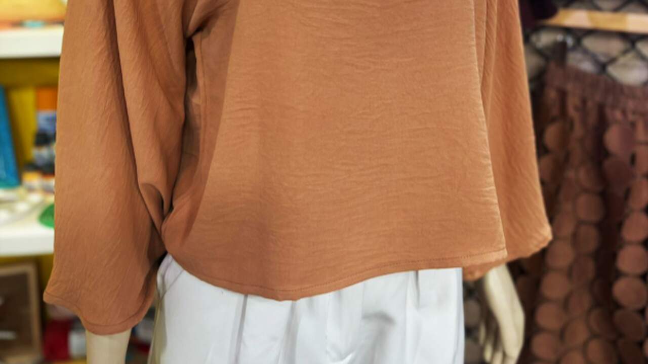 2 - Corte as mangas. Com o tecido dobrado, desenhe e corte o formato das mangas, deixando-as amplas no estilo flare;