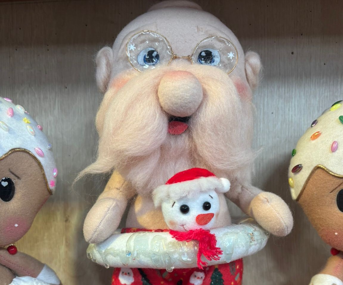 • Fixe o boneco sobre a base com cola quente, garantindo que ele fique centralizado e firme.
