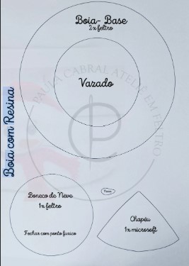 • Faça o boneco de neve em feltro: molde a cabeça fazendo o ponto fuxico e encha com fibra de silicone para que fique bem redondinha e adicione os olhos, nariz, borde as sobrancelhas e boca e acessórios como cachecol e gorro;