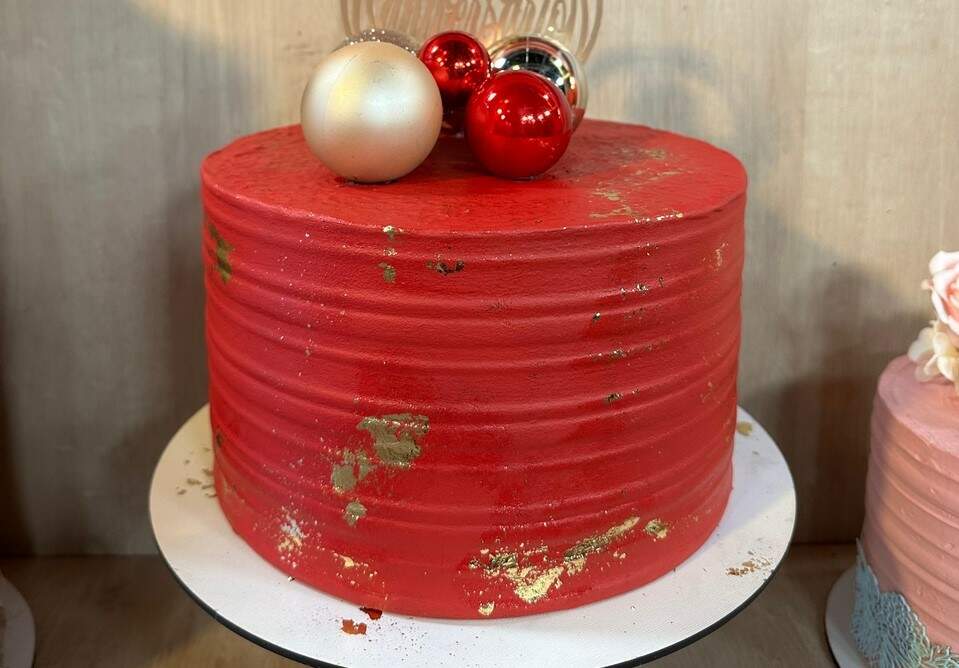 Pintar na cor que deseja (escolhida: vermelho) e decorar com folha de ouro e com bolinhas de natal.