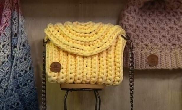 Acabamentos: dobra a parte reta da bolsa e costure as laterais, costura o botão imantado, nas laterais colocar as argolas articuladas e a alça.