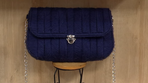 4 - Após finalizar o bordado por toda a tela, una as laterais à parte da frente e do fundo da bolsa usando pontos de arremate utilizando o mesmo fio utilizado no bordado;