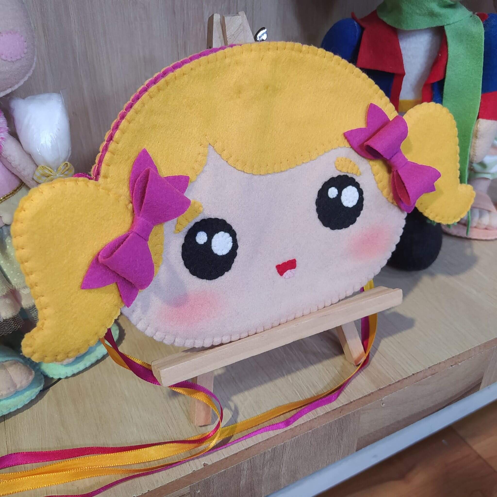 A alça da bolsa é feita com fitinha de cetim, colando nas laterais.