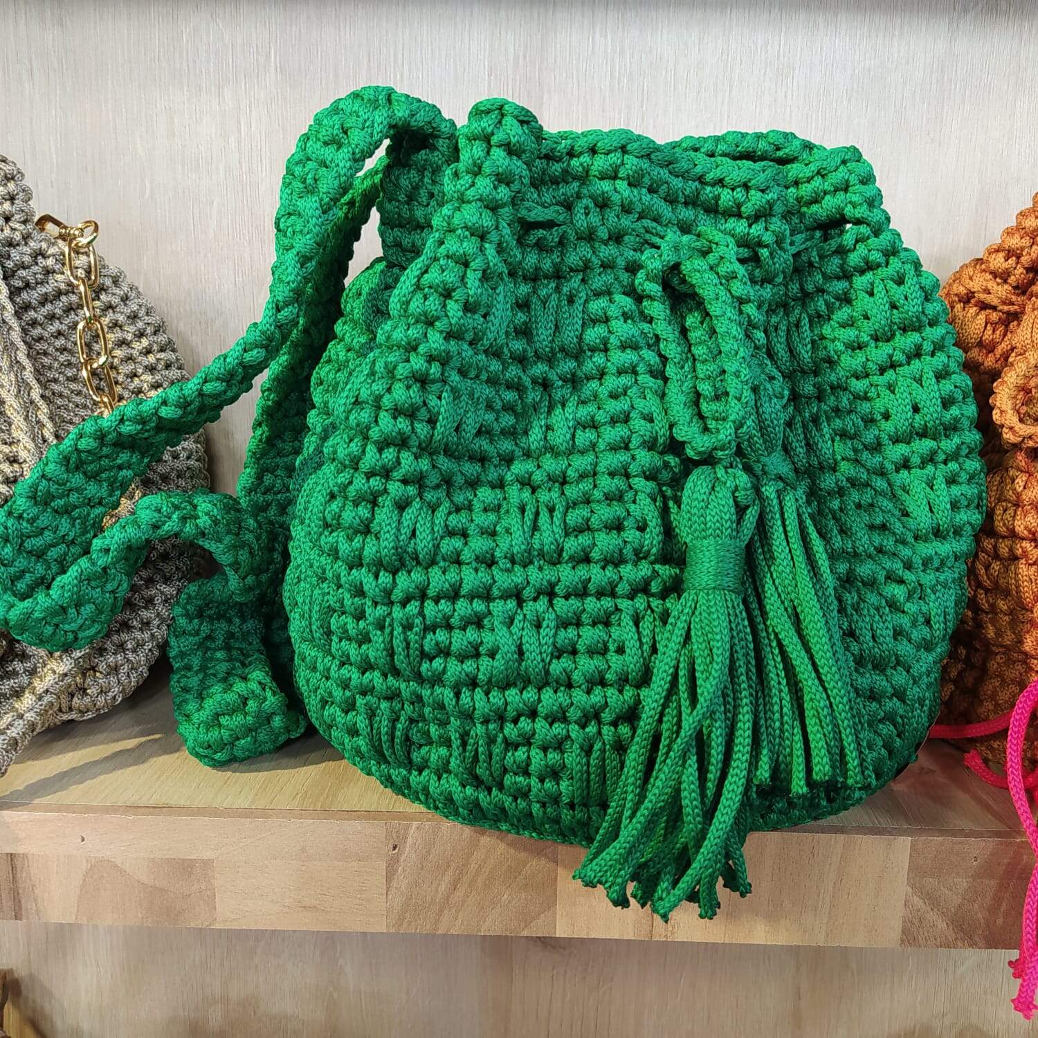 Carr 1: faça um cordão com 90cm de correntinhas. e em cada ponta amarre um tassel.