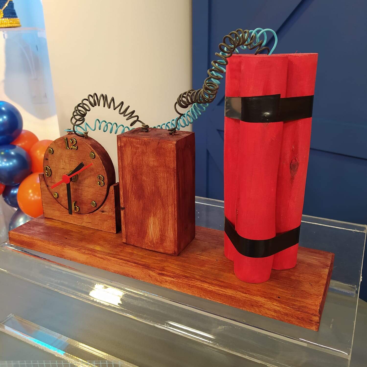 - fixar os parafusos na parte superior do relógio e na base de madeira;