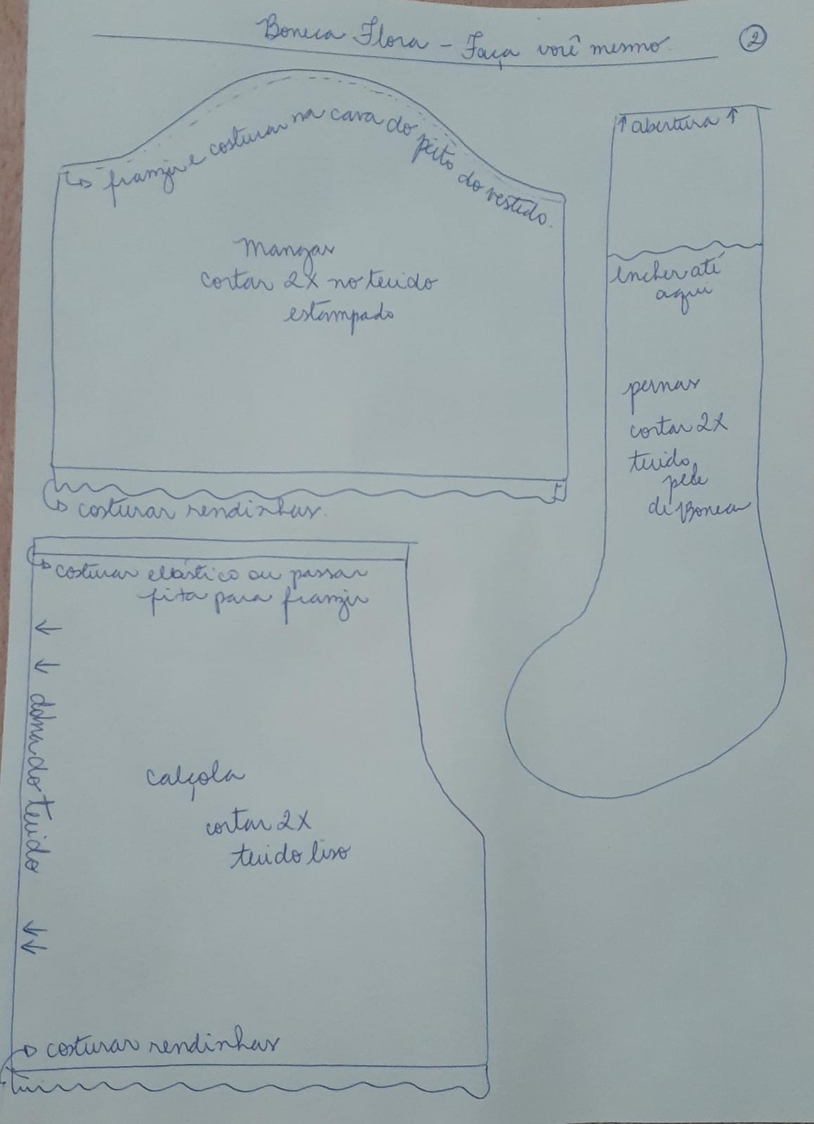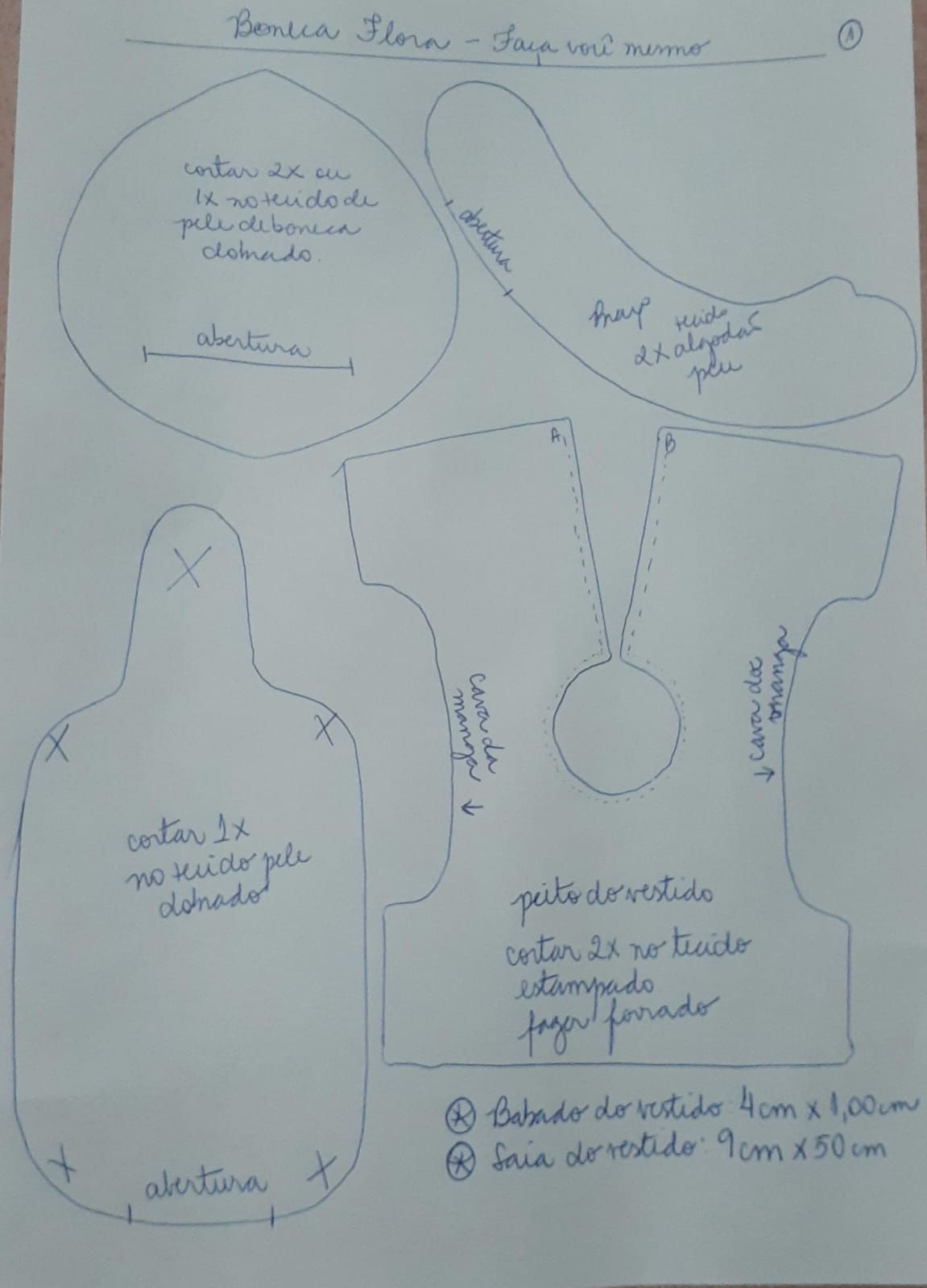 Transfira o molde para os tecidos de boneca e estampados. Costure, com a máquina de costura, seguindo as informações descritas no molde.