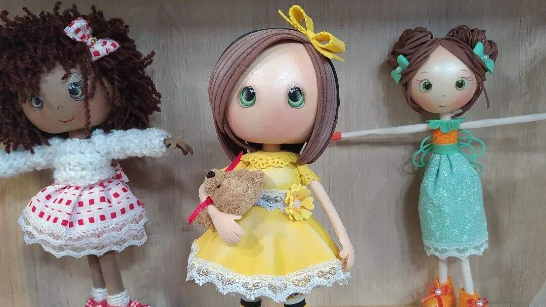 Agora é só montar começando pelos pés que será a base, seguindo a sequência pernas, corpo, braços e cabeça, use uma base de acrílico para sustentar a boneca em pé.