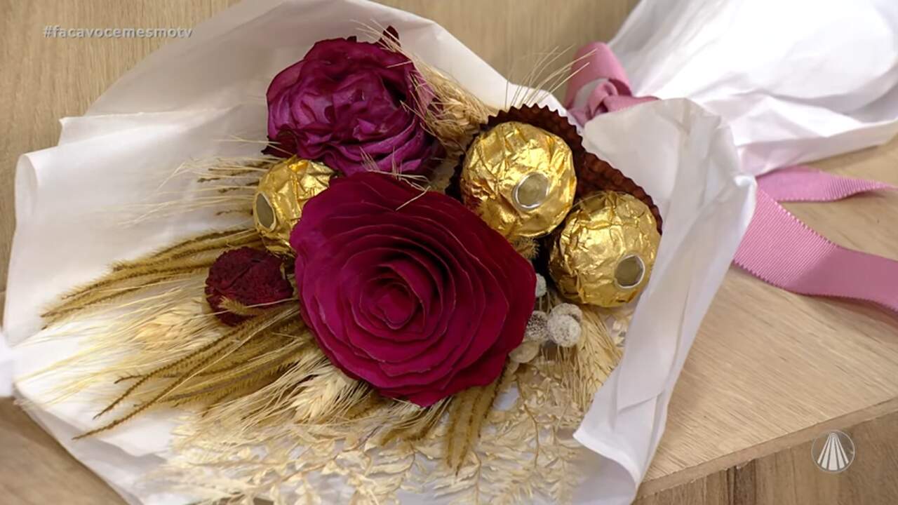 10 - Quando terminar a montagem, utilize um elástico ou fita floral para amarrar o buquê;