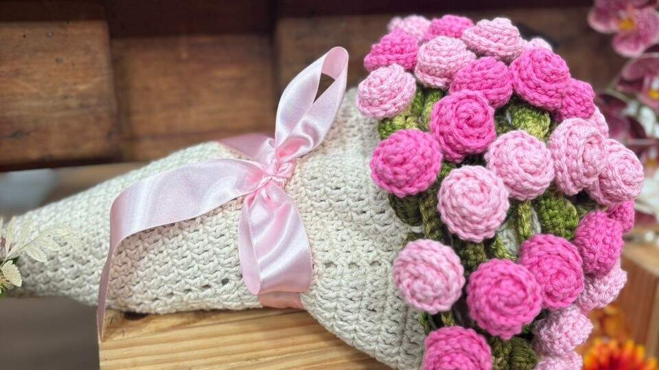 8 - Pegue os dois fios e leve para a base superior da flor. Faça o arremate ensinado no vídeo;