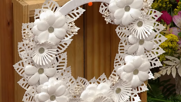20 - Coloque a flor simples (apenas 1 flor sem camada), repetindo a sequência até sobrar um pequeno espaço para segurar.