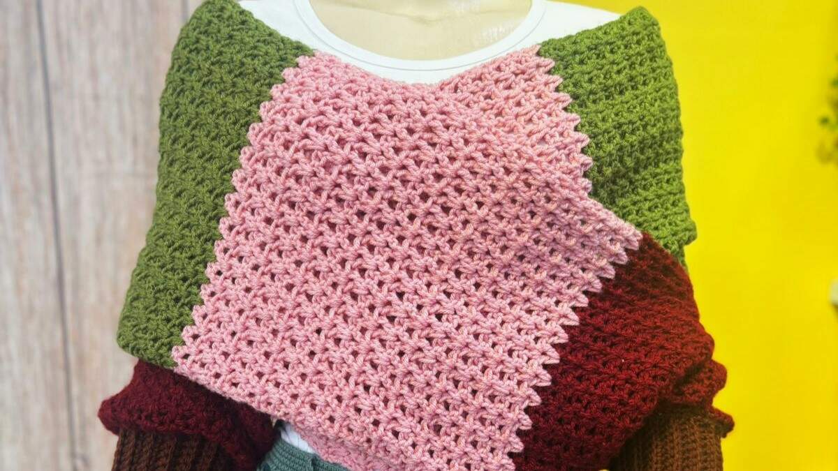 5 - Comprimento da peça: Trabalhe dessa forma por aproximadamente 1,50m, ou ajuste conforme seu corpo, medindo de modo que a peça envolva os ombros, cruze na frente (formando um “X”) e alcance até a altura dos cotovelos;
