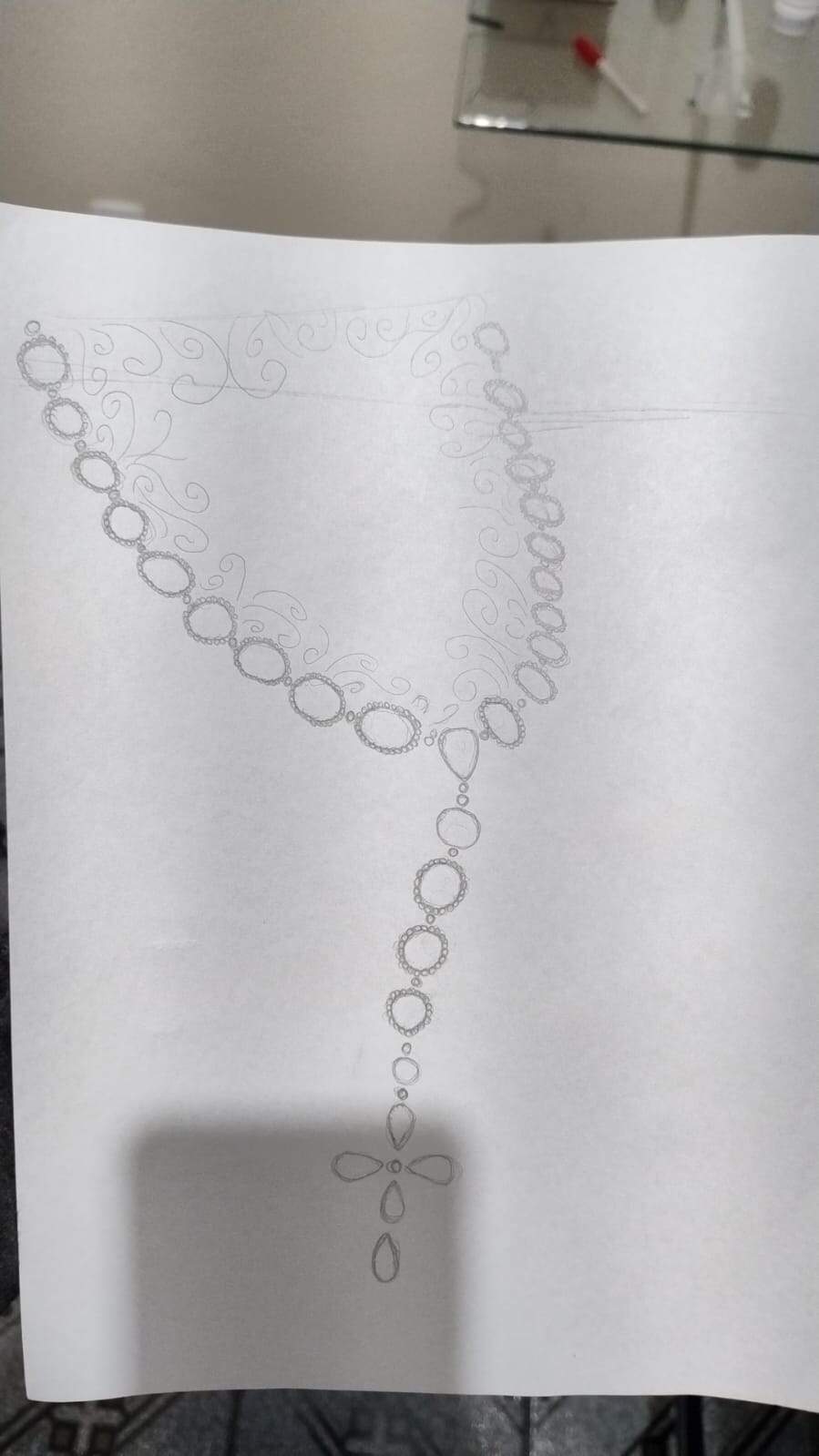 Depois cole as pedrarias e faça o desenho com a cola de tecido.