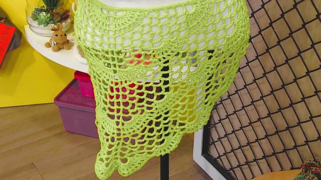 4 correntinhas, *1 pt. alto sobre o pt. alto, *1 corr. 1 pt. alto repetir de *a *