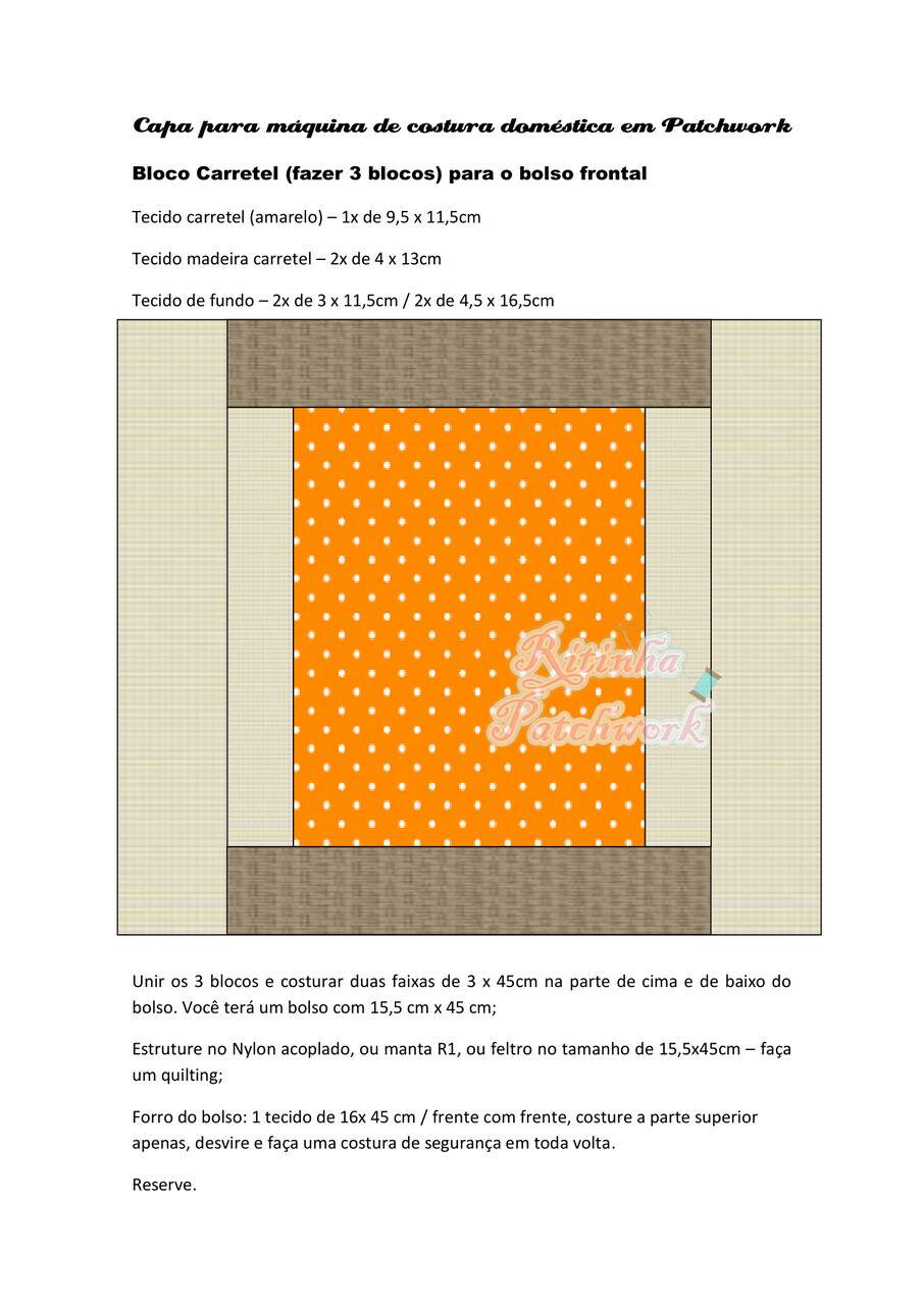 1 - Bloco Carretel (fazer 3 blocos) para o bolso frontal: