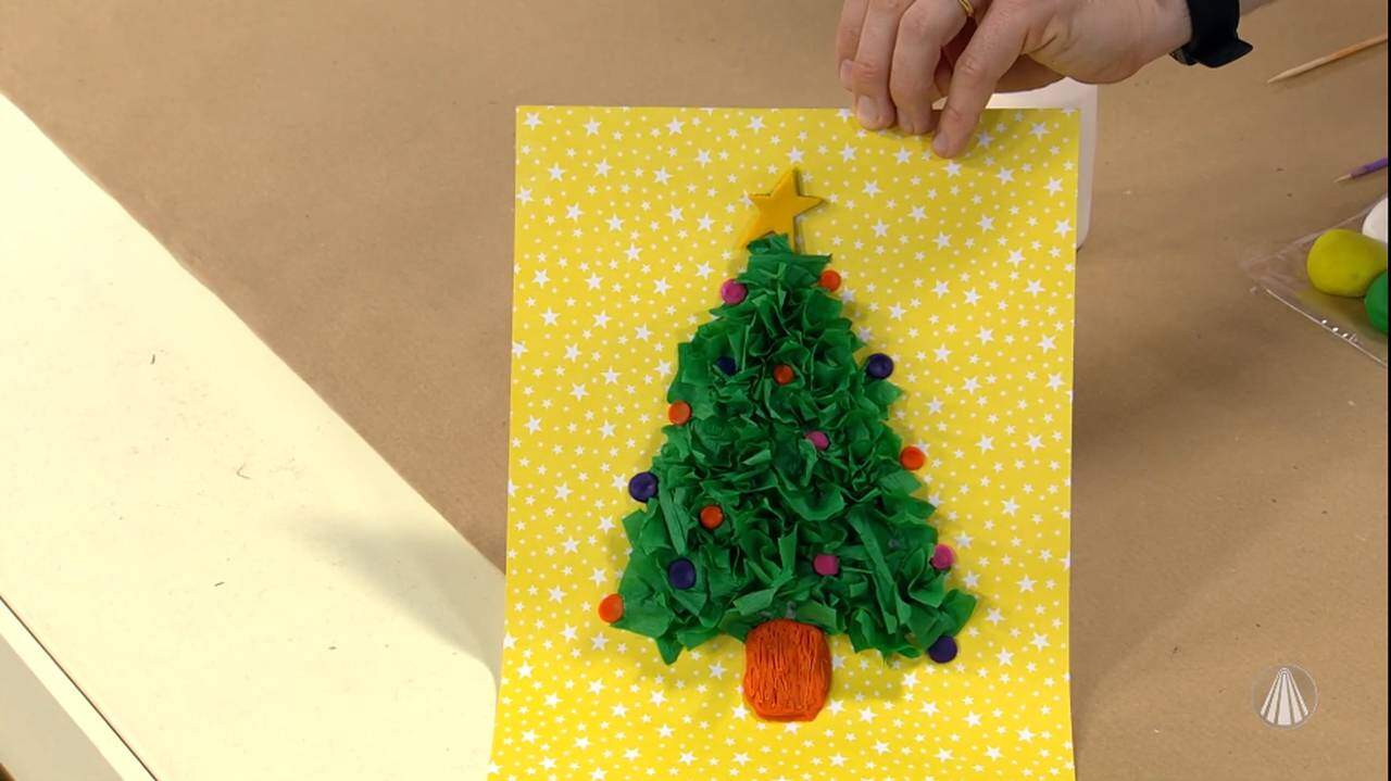 Por fim, com a massinha amarela, faça uma estrela e cole no topo da árvore.