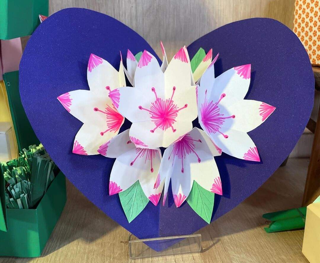 - Recortar um gomo da flor fora e depois colar sobrepondo as duas últimas.