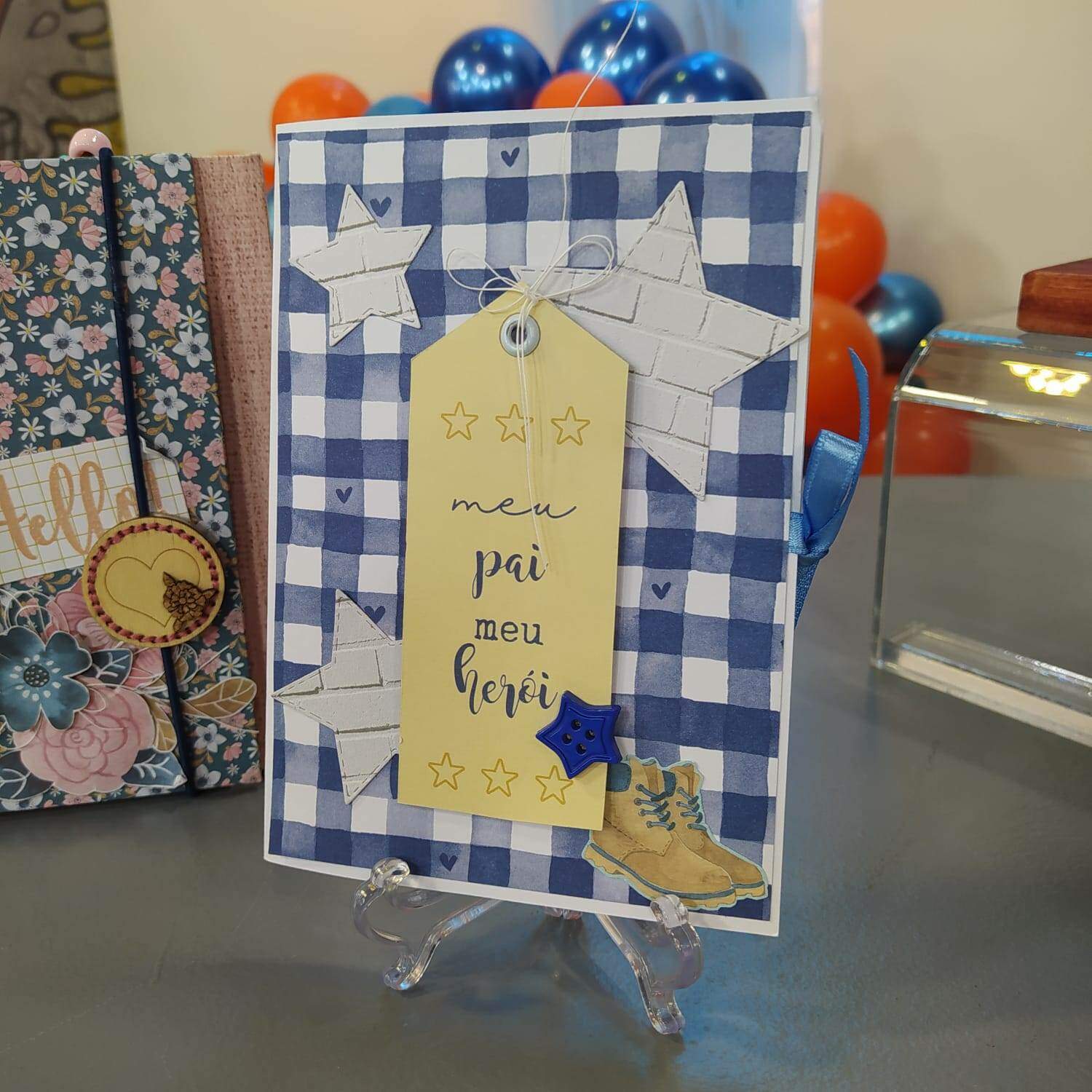 Dobre ao meio os papéis de 15x7cm e cole os papéis decorados de 6,5x6,5cm.
