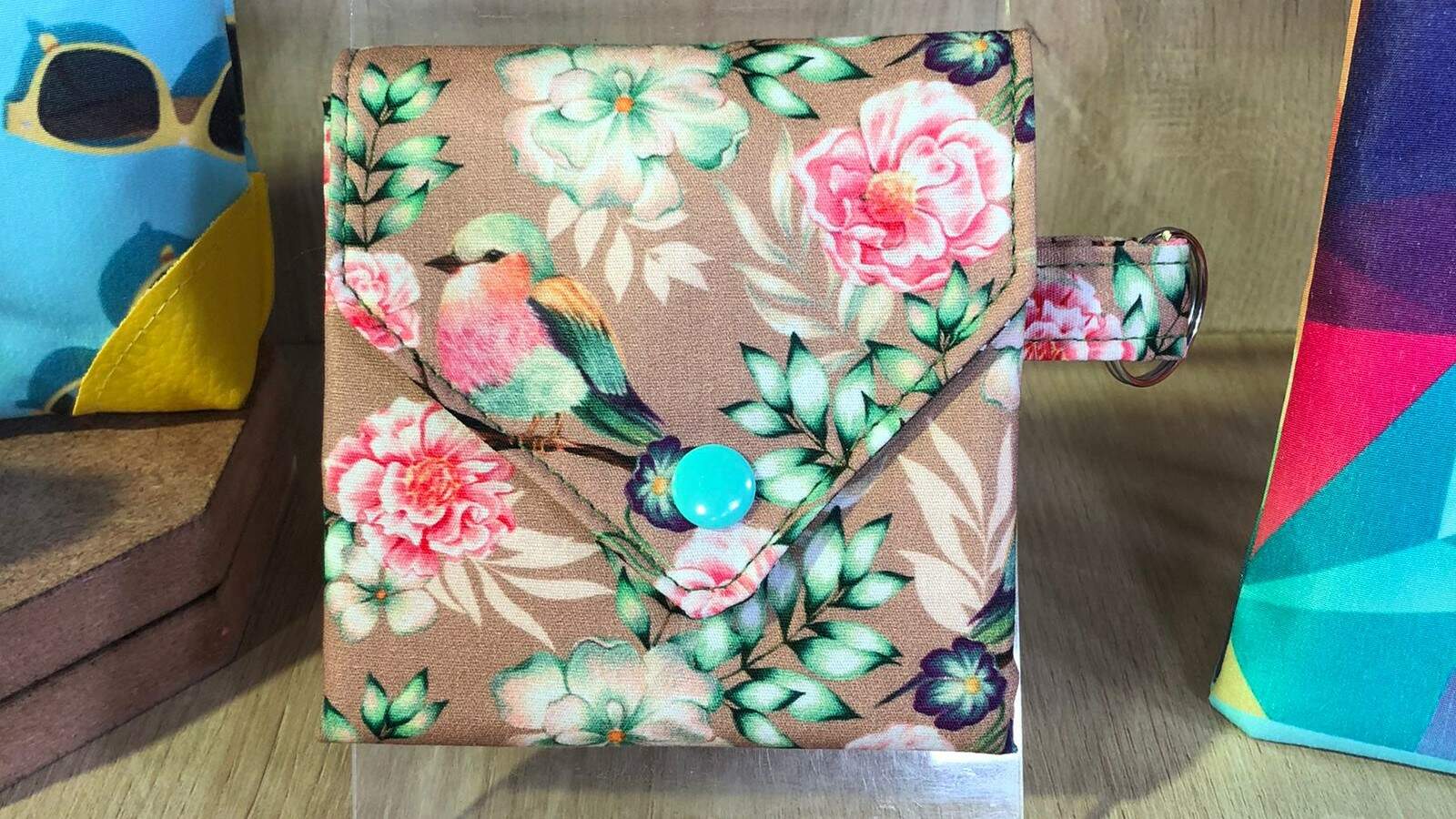 9) Abra a peça e alinhe cada parte para um lado e dobre mais uma vez ao meio (dessa vez na horizontal). Passe uma costura unindo as duas partes soltas de cada lado. Nesse momento coloque sua alcinha com a meia argola (opcional).