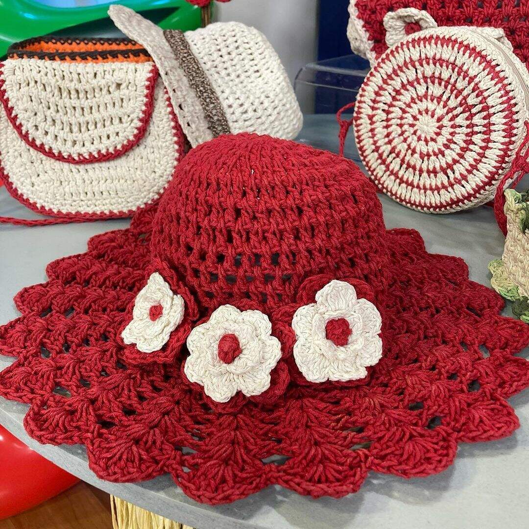 Depois siga por mais 9 voltas de ponto alto sem aumentos para fazer a aba do chapéu. Faça pontos baixos com aumentos de 2 e 1 pontos baixos.